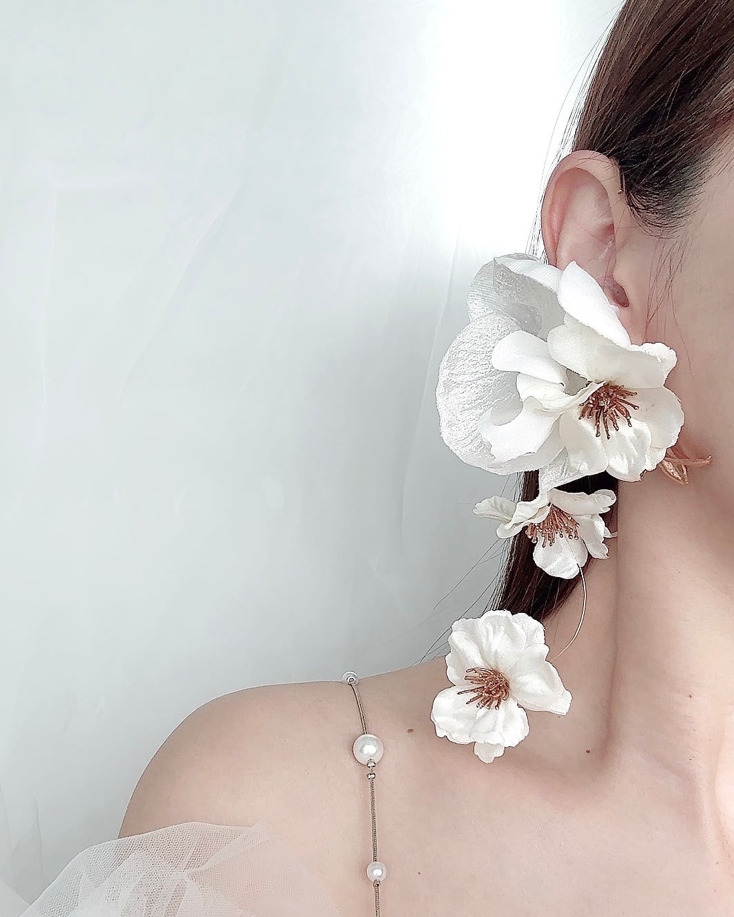 いつものアーティシャルフラワーとは違うwhite生地を使って作られているのもpoint♡