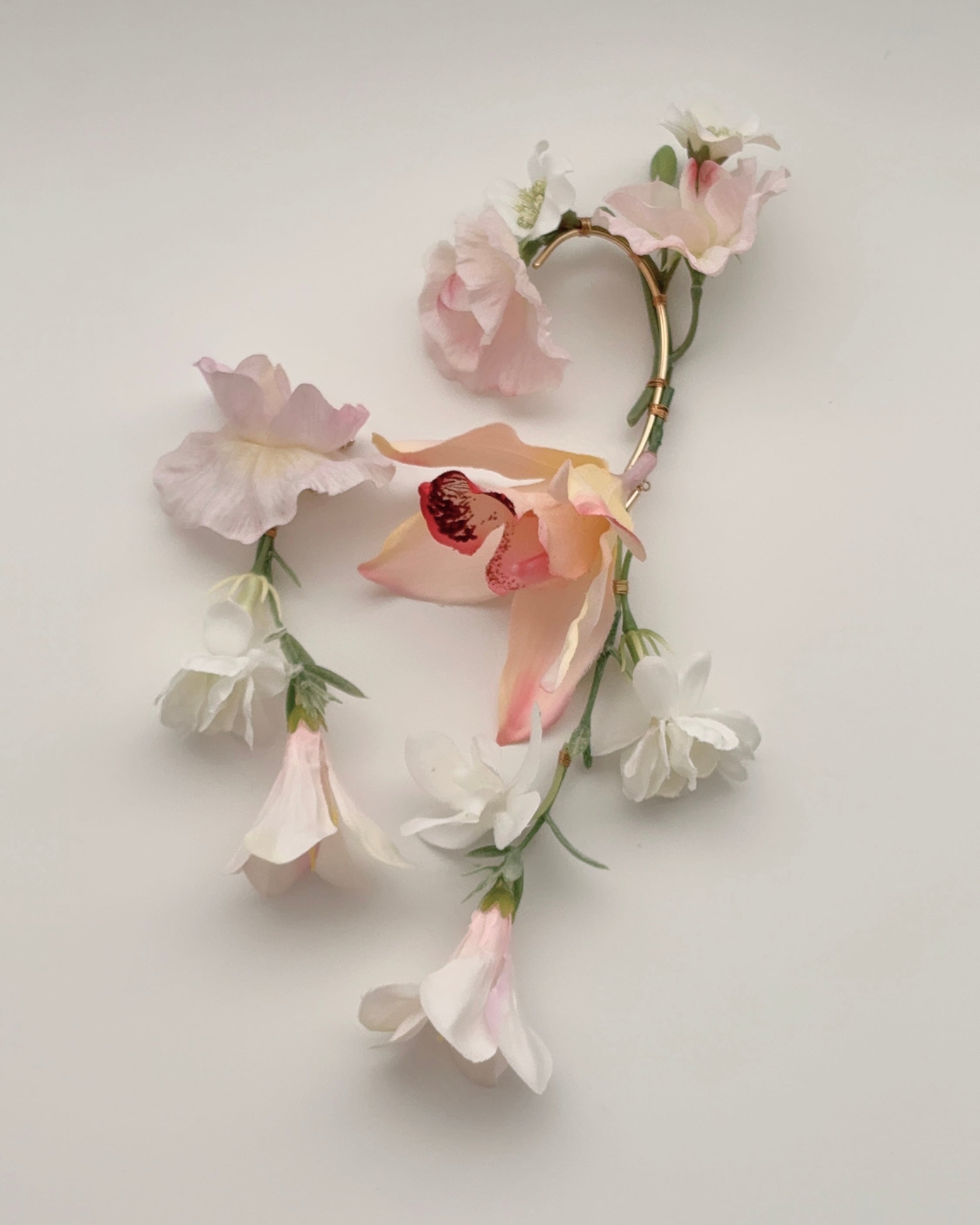 そんなアーティシャルフラワーを用いてウェディングドレスをより華やかに特別に彩ってくれるフラワーイヤーカフを制作しました♡