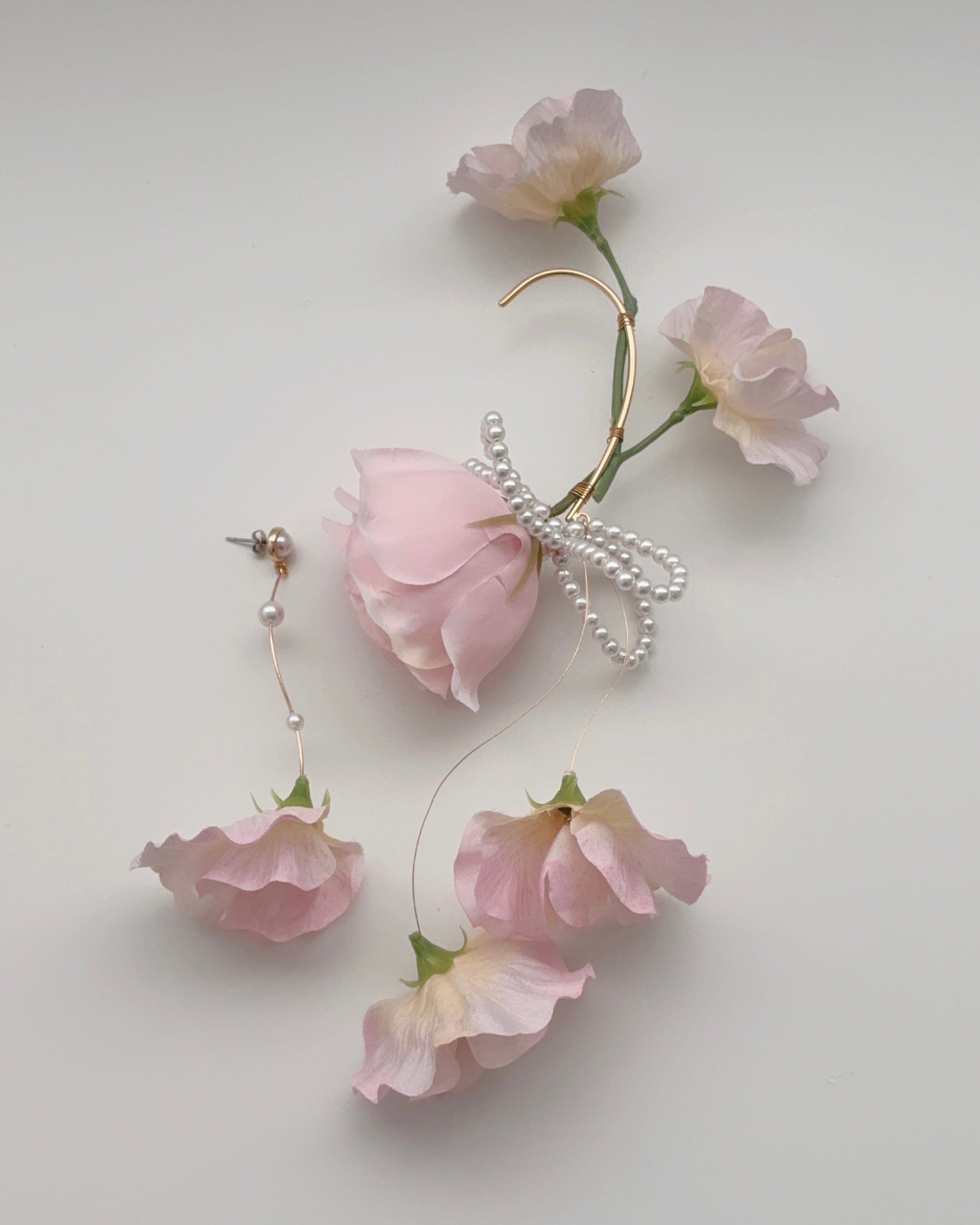 そんなアーティシャルフラワーを用いてウェディングドレスをより華やかに特別に彩ってくれるフラワーイヤーカフを制作しました♡